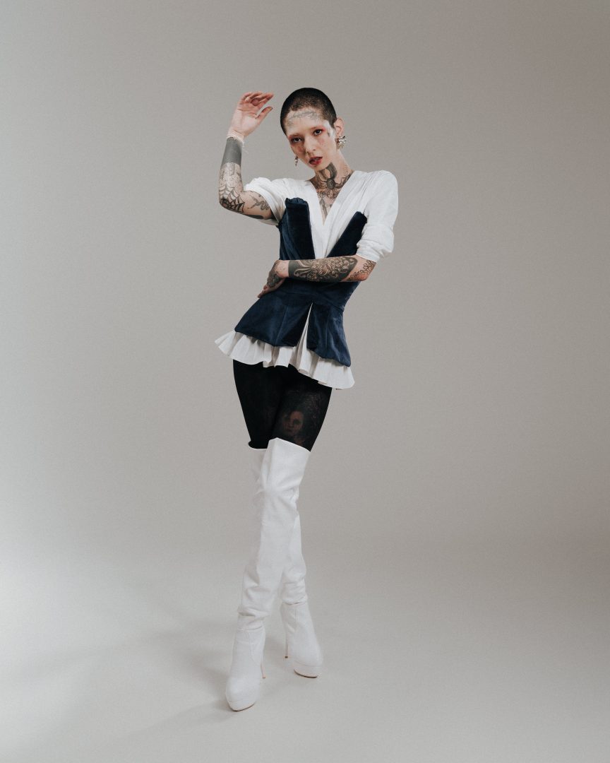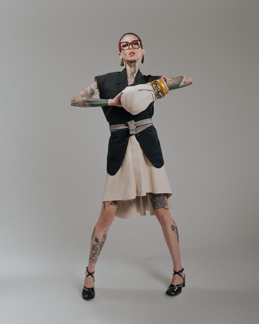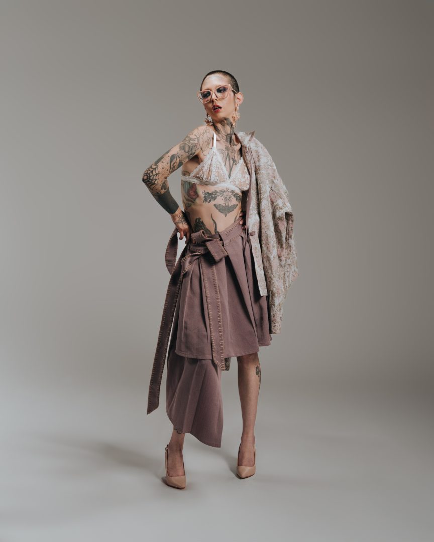 El estilismo cobró vida en colaboración, donde tres miradas y tres visiones —modelo, diseñadora y productor— se entrelazaron para elevar cada propuesta. El resultado fue arriesgado pero equilibrado, logrando una unión entre lo comercial y lo creativo que transmite fuerza, carácter y autenticidad en cada imagen.