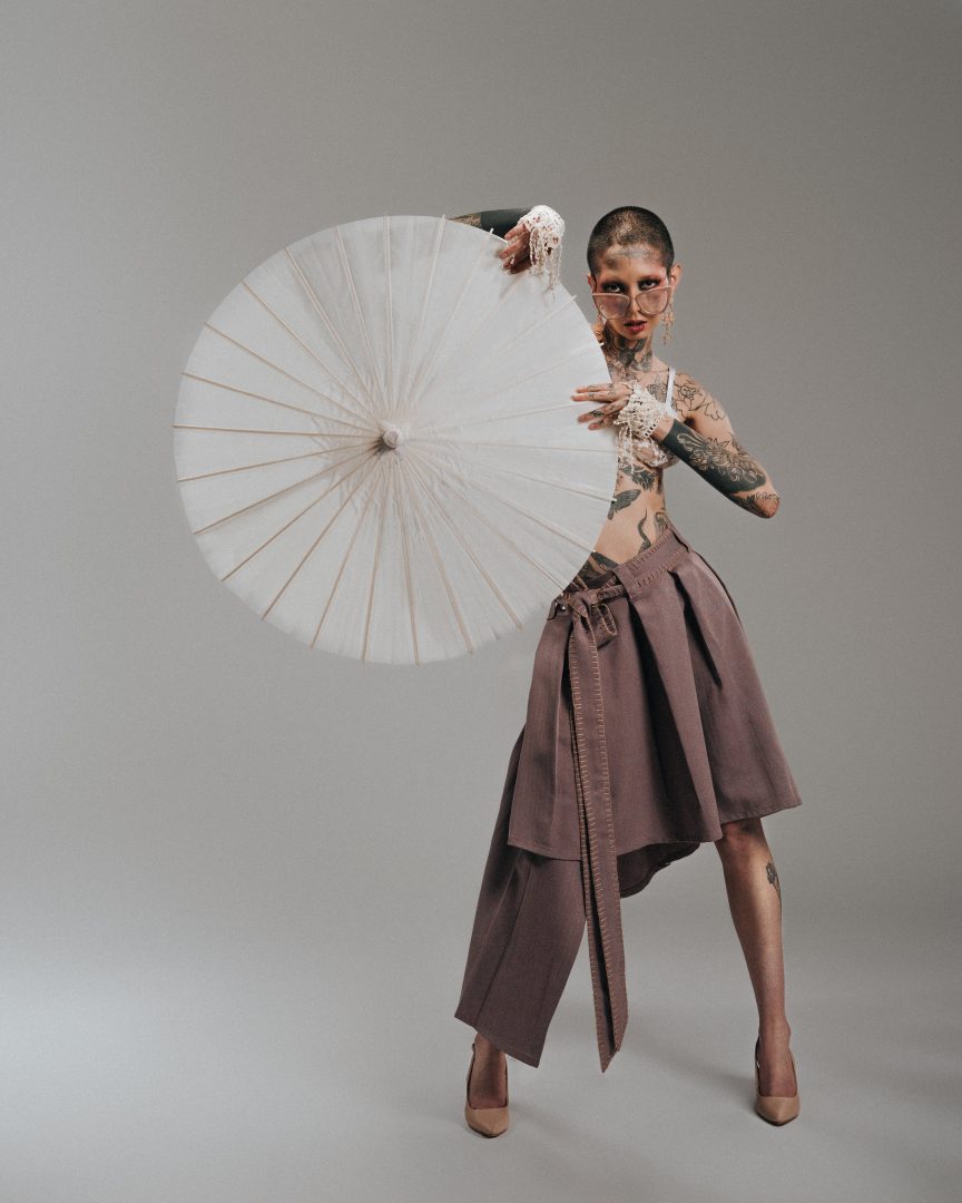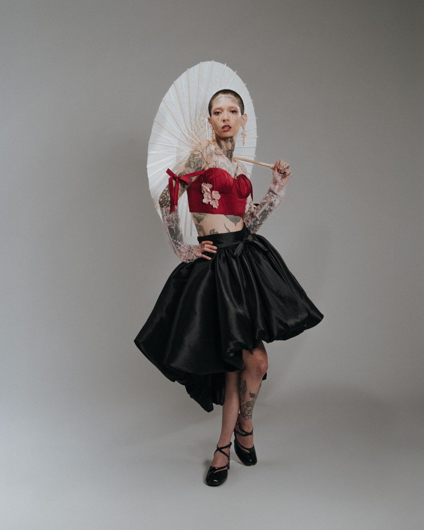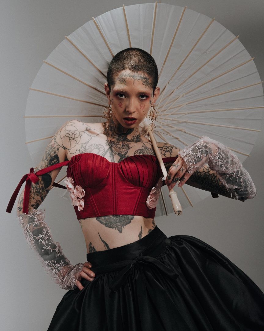 Me gradué en Dirección y Diseño de Moda en Trozmer. Mi primera colección se llamó “Matices”, inspirada en las flores de cerezo y su significado en la cultura japonesa. Me identifiqué mucho con la flor de sakura porque representa que la vida no es solo blanco o negro, sino una gama de matices que nos hace humanos, sensibles y conscientes.